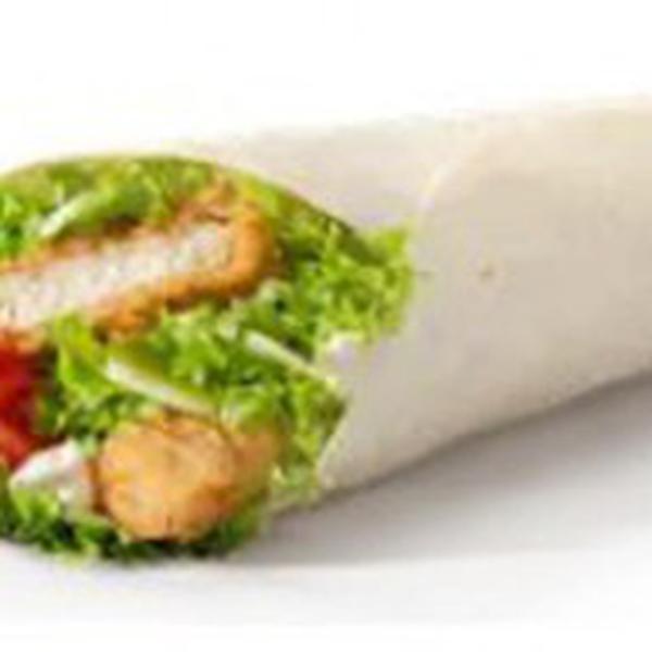 Состав: 100% белое куриное мясо в хрустящей панировке, ломтик помидора, листья салата и ломтики твёрдого сыра, заправленные специальным соусом и завёрнутые в пшеничную лепешку
