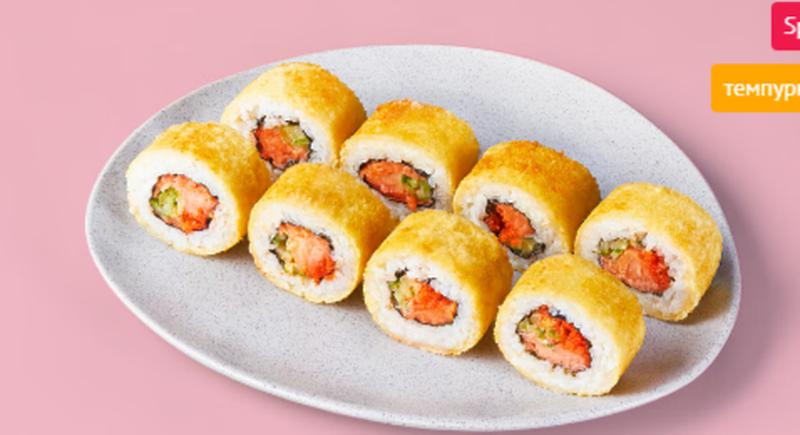 Состав: Лосось, оранжевая икра масаго, соус спайси, огурец, темпурный кляр (темпурная мука, вода), панировочные сухари, рис (рис, вода, заправка для риса), нори *Не забудьте заказать имбирь, васаби и соевый соус. Они не входят в стоимость заказа.