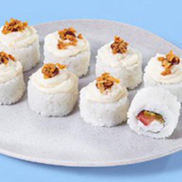 Состав: Сыр сливочный, перец халапеньо, помидор, монако с беконом, барбекю соус, лук фри, рис, нори *Не забудьте заказать имбирь, васаби и соевый соус. Они не входят в стоимость заказа.