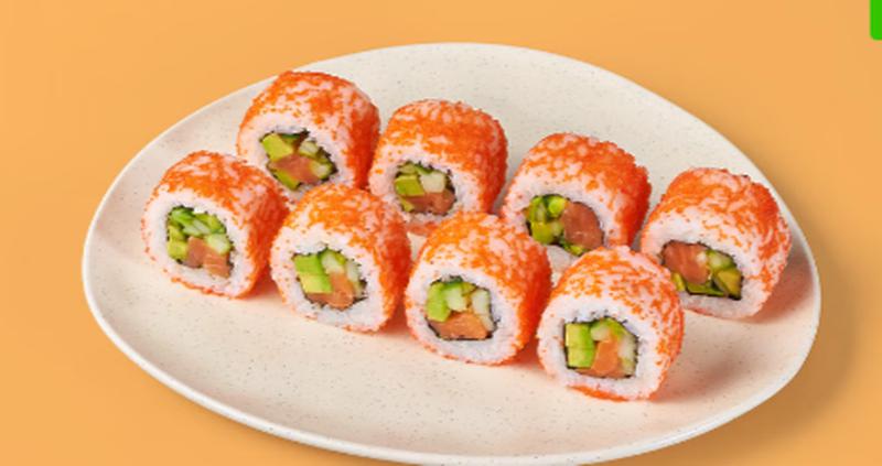 Состав: Лосось, икра масаго, авокадо, огурец, майонез, рис (рис, вода, заправка для риса), нори *Не забудьте заказать имбирь, васаби и соевый соус. Они не входят в стоимость заказа.