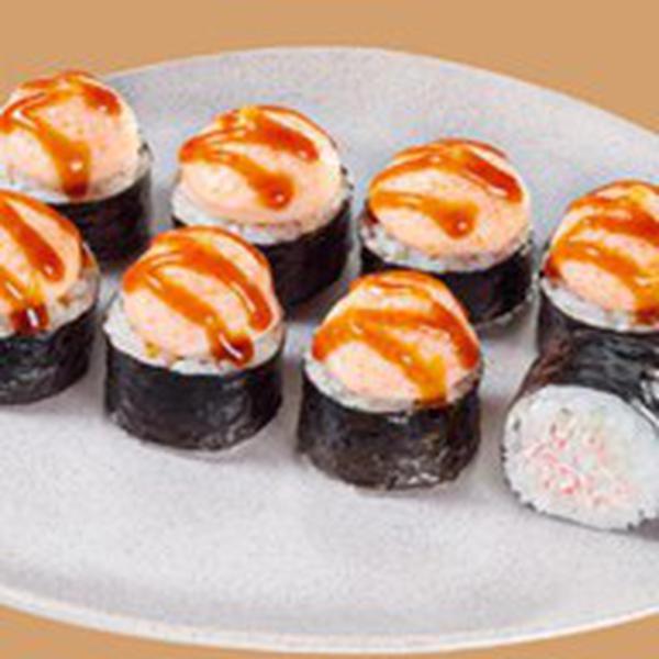 Состав: Крабовые палочки, фирменный сырный соус, рис, нори. *Не забудьте заказать имбирь, васаби и соевый соус. Они не входят в стоимость заказа.
