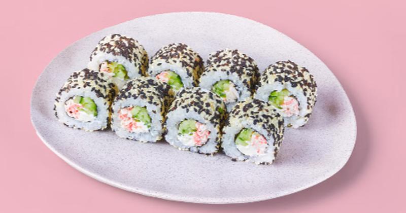 Состав: Крабовые палочки, сливочный сыр, огурец, кунжут, рис (рис, вода, заправка для риса), нори *Не забудьте заказать имбирь, васаби и соевый соус. Они не входят в стоимость заказа.