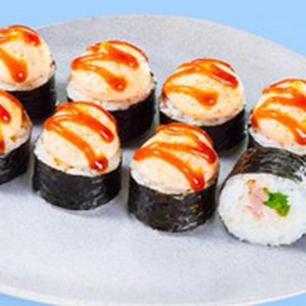 Состав: Бекон, зеленый лук, спайси соус, фирменный сырный соус, унаги соус, рис, нори. *Не забудьте заказать имбирь, васаби и соевый соус. Они не входят в стоимость заказа