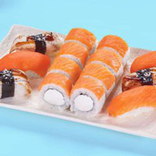 Состав: Филадельфия лайт (8 шт.), Суши с лососем (3 шт.), Суши с угрем (3 шт.) *Не забудьте заказать имбирь, васаби и соевый соус. Они не входят в стоимость заказа.