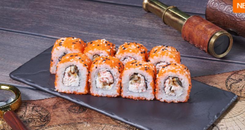 Состав: Угорь, икра масаго оранжевая, сливочный сыр, кунжут, крем краб соус, рис, нори. *Не забудьте заказать имбирь, васаби и соевый соус. Они не входят в стоимость заказа.
