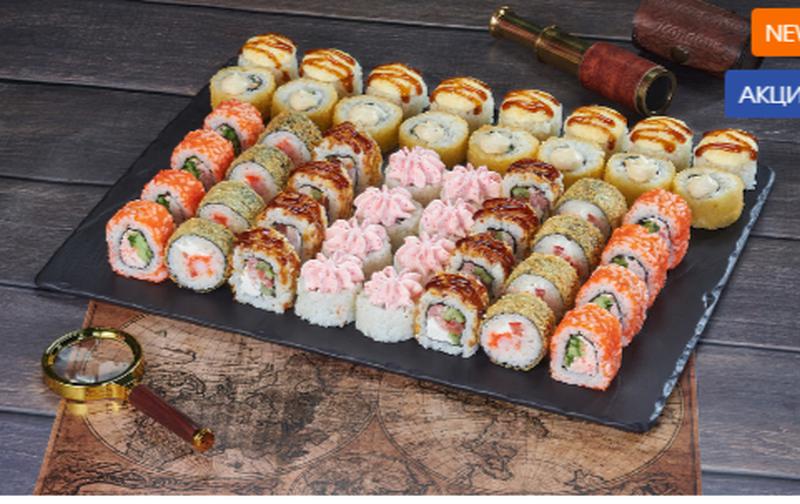 Состав: Ролл Бангкок (8 шт.), ролл Кракатау фреш (8 шт.), ролл Калифорнийский краб (8 шт.), ролл Египетская курица (8 шт.), ролл Кентукки хот (8 шт.), ролл Монтана (8 шт.) *Не забудьте заказать имбирь, васаби и соевый соус. Они не входят в стоимость заказа.