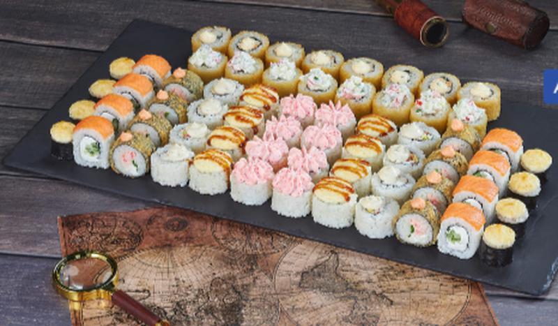 Состав: Ролл Филадельфия Лайт (8 шт.), ролл Кракатау фреш (8 шт.), ролл Кентукки (8 шт.), ролл Египетская курица (8 шт.), ролл Кентукки хот (8 шт.), ролл Эль Пасо (8 шт.), ролл Карибы (8 шт.), ролл Мальта с сыром (8 шт.) *Не забудьте заказать имбирь, васаби и соевый соус. Они не входят в стоимость заказа.