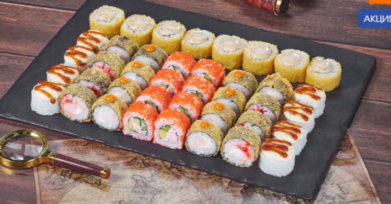 Состав: Ролл Египетская курица (8 шт.), Ролл Макарена (8 шт.), Ролл Кентукки хот (8 шт.), Ролл Калифорнийский краб (8 шт.), Ролл Бангкок (8 шт.) *Не забудьте заказать имбирь, васаби и соевый соус. Они не входят в стоимость заказа. *Внешний вид блюда может отличаться от фото на сайте.