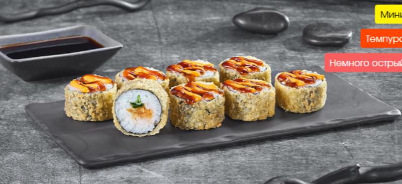 Состав: Лосось терияки, лук зеленый, кляр темпурный, сухари панировочные, соус спайси, соус унаги, рис, нори. *Внешний вид блюда может отличаться от фото на сайте