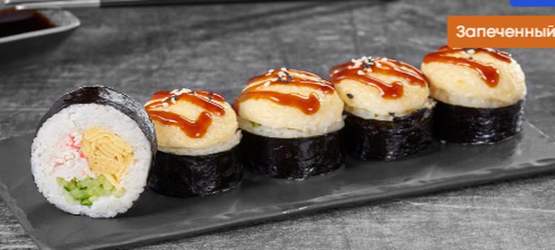 Состав: Блин тамаго, краб-микс соус, японский соус, монако соус, унаги соус, кунжут, огурец, рис, нори