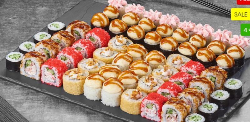 Состав: Дон бекон (8 шт.), Лава с крабом (8 шт.), Калифорния каппа маки с икрой (8 шт.), Каппа маки (8 шт.), Чикен темпура (8 шт.), Нежный с курицей запеченный (8 шт.), Маки бекон запеченный (8 шт.), Маки эби запеченный (8 шт.)
