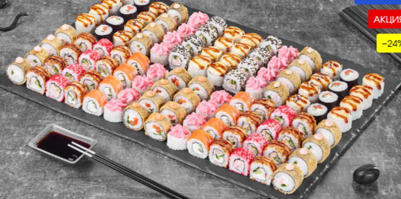 Состав: Ролл Филадельфия лайт сяке (8 шт), Ролл Калифорния классика (8 шт), Ролл Калифорния в кунжуте (8 шт), Ролл Лава с лососем (8 шт), Ролл Лава с крабом (8 шт), Ролл Дон бекон (8 шт), Ролл Чикен дон (8 шт), Мини ролл с копченой кетой (8 шт), Ролл Крабстер темпура (8 шт), Ролл Пылкая креветка запеченный (8 шт), Ролл Лосось фри темпура (8 шт), Ролл Краб фри темпура (8 шт), Ролл Нежный с лососем запеченный (8 шт), Ролл Нежный с курицей запеченный (8 шт). *Внешний вид блюда может отличаться от фото на с