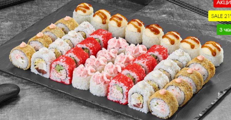 Состав: Калифорния каппа маки с икрой 8шт, Куритос 8шт, Лава с крабом 8шт, Нежный с лососем запеченный 8шт, Краб фри темпура 8шт.