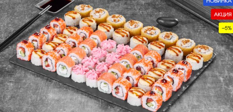 Состав: Ролл Филадельфия лайт сяке (8 шт), Ролл Калифорния микс (8 шт), Ролл Мистер барбекю (8 шт), Ролл Лава с креветкой (8 шт), Ролл Чикен темпура (8 шт), Ролл Нежный с курицей запеченный (8 шт), Ролл Сумоку запеченный (8 шт). *Внешний вид блюда может отличаться от фото на сайте.